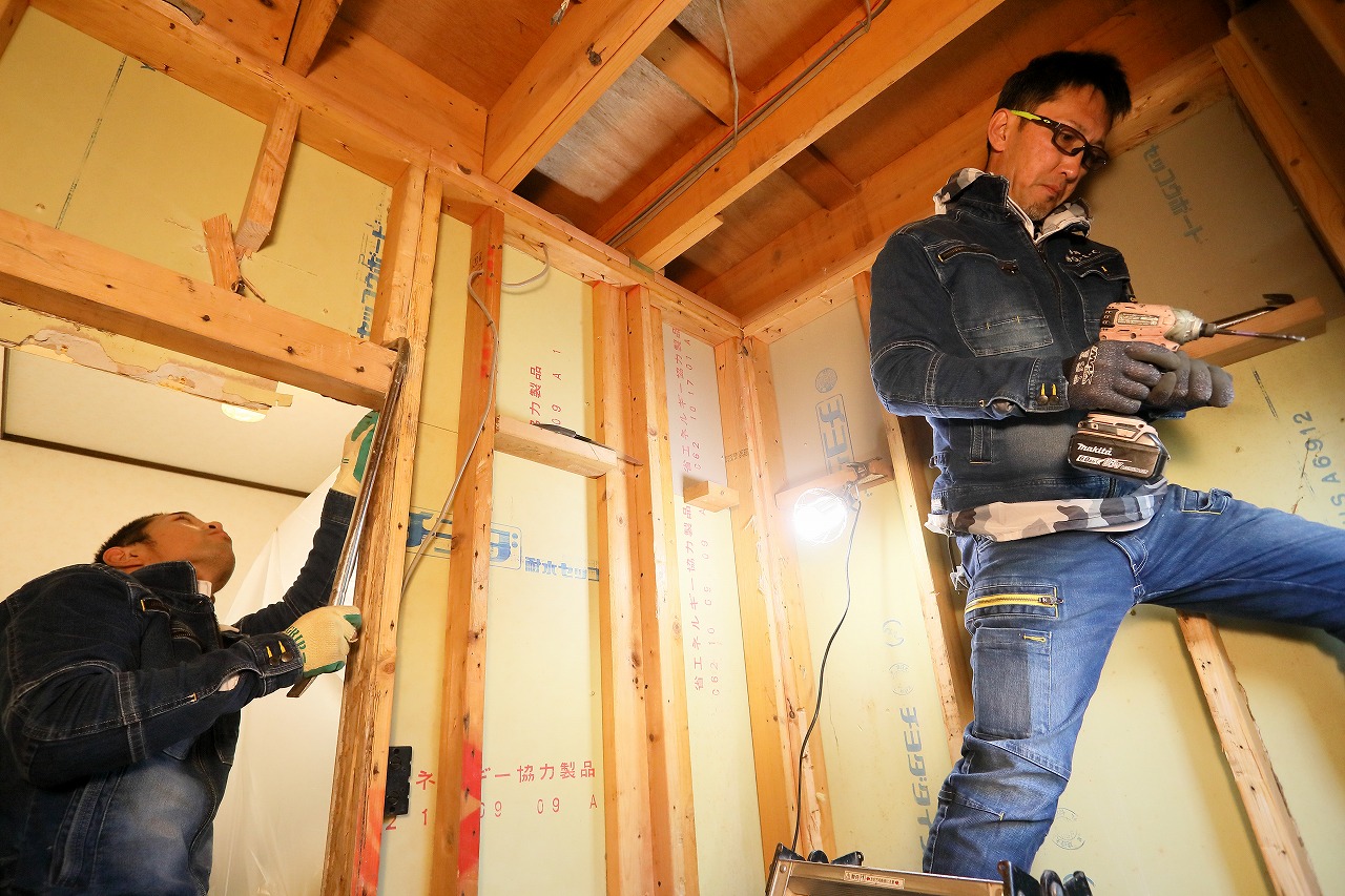弊社では、ユニットバスの取り付け工事に伴う大工工事、リフォーム工事をメインに仕事を行っていただきます。